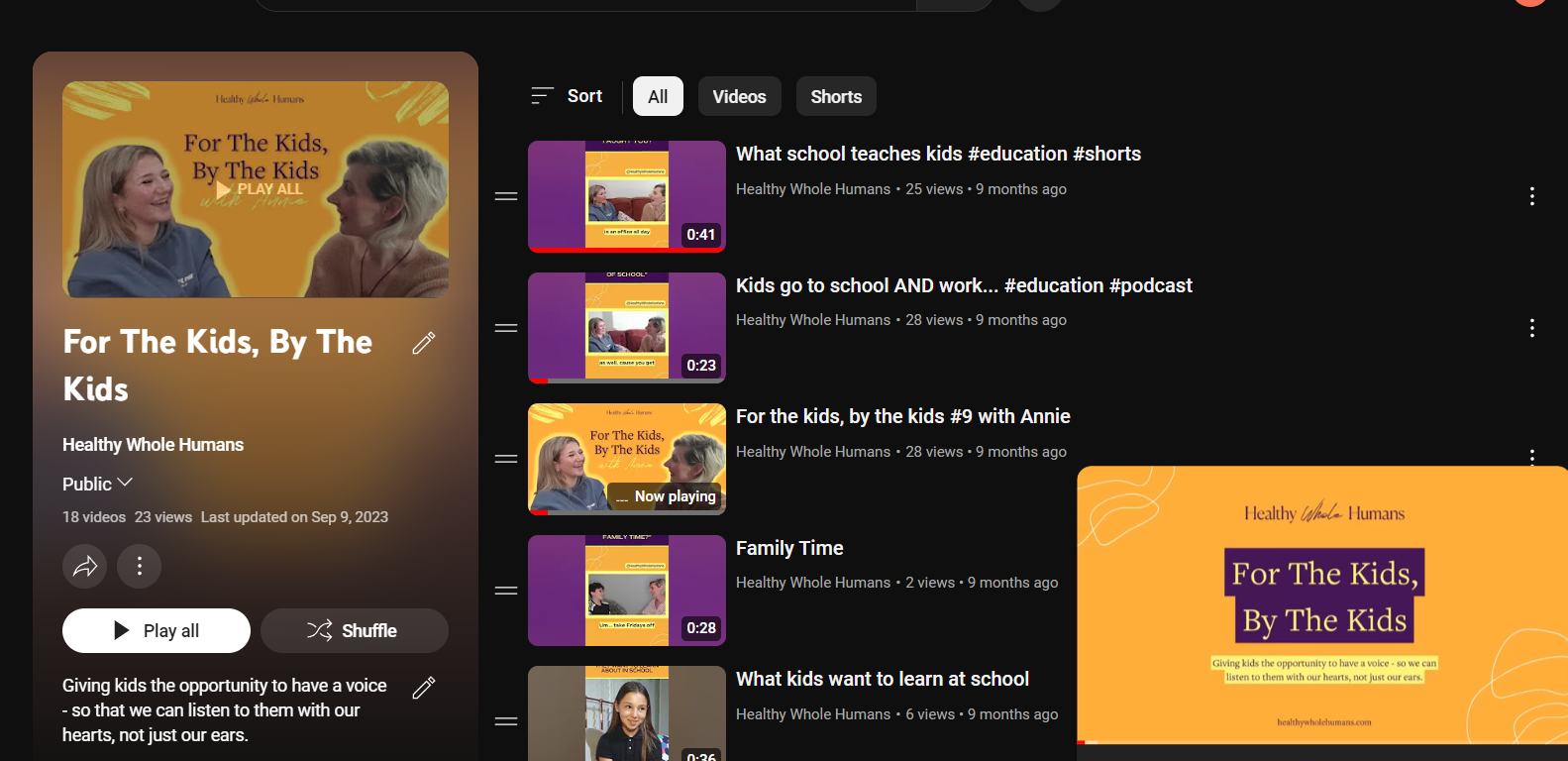 All chats are on our youtube channel playlist ‘For The Kids, By The Kids.’